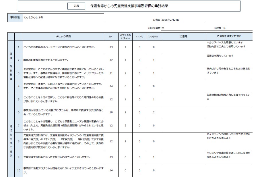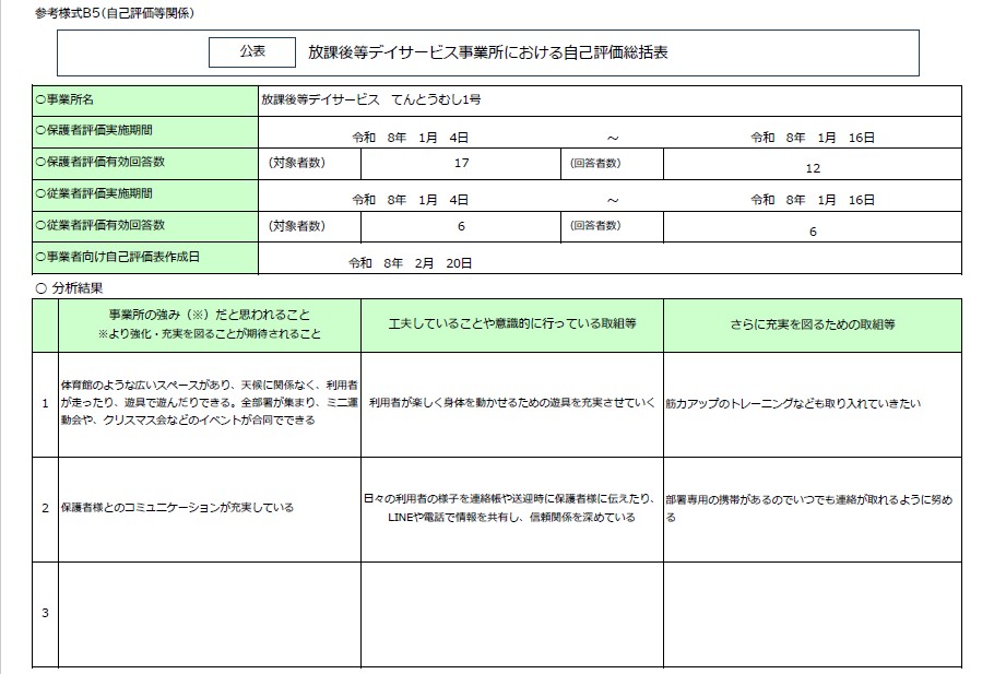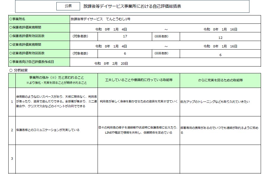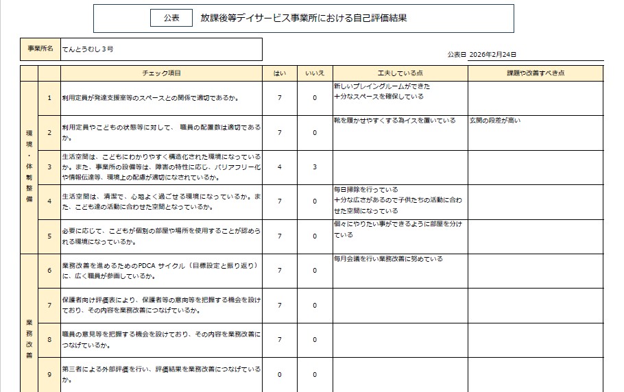 令和7年度 放課後等デイサービス事業所てんとうむし3号 自己評価・保護者等の事業所評価・支援プログラム