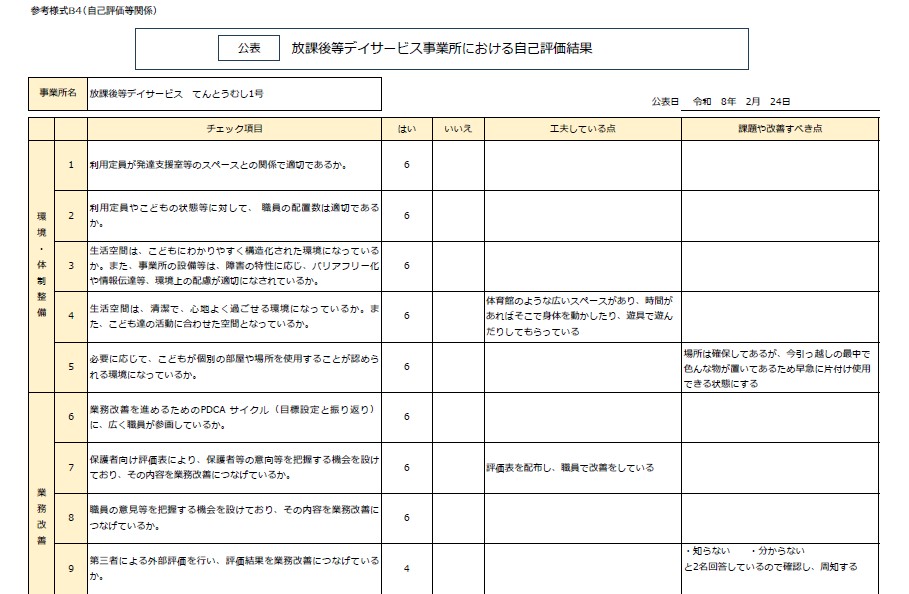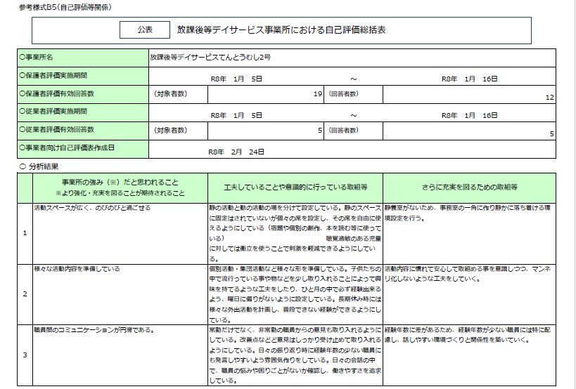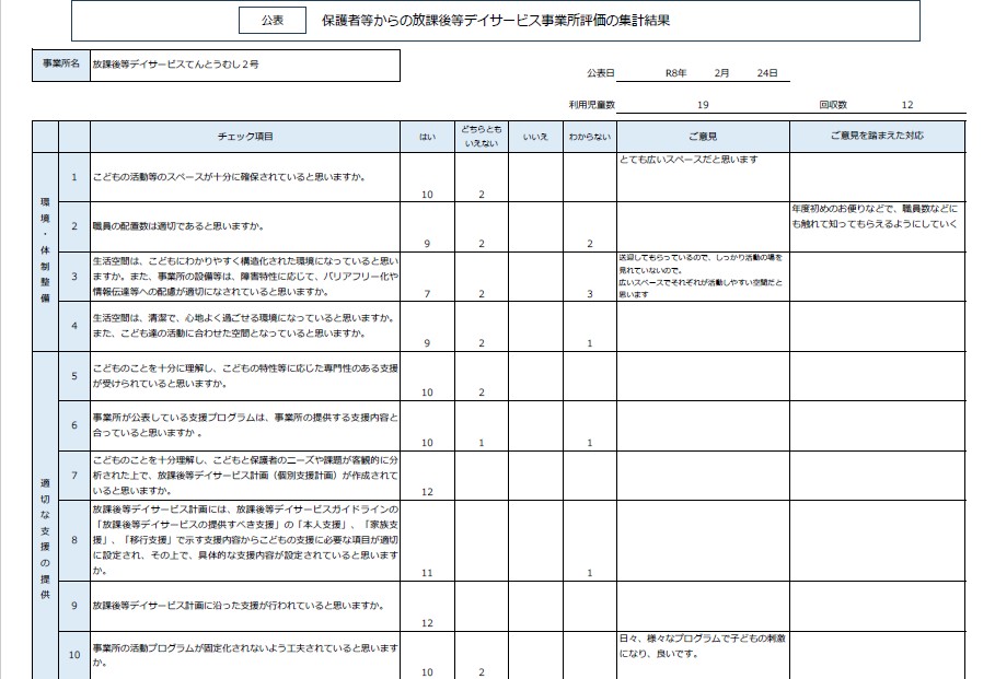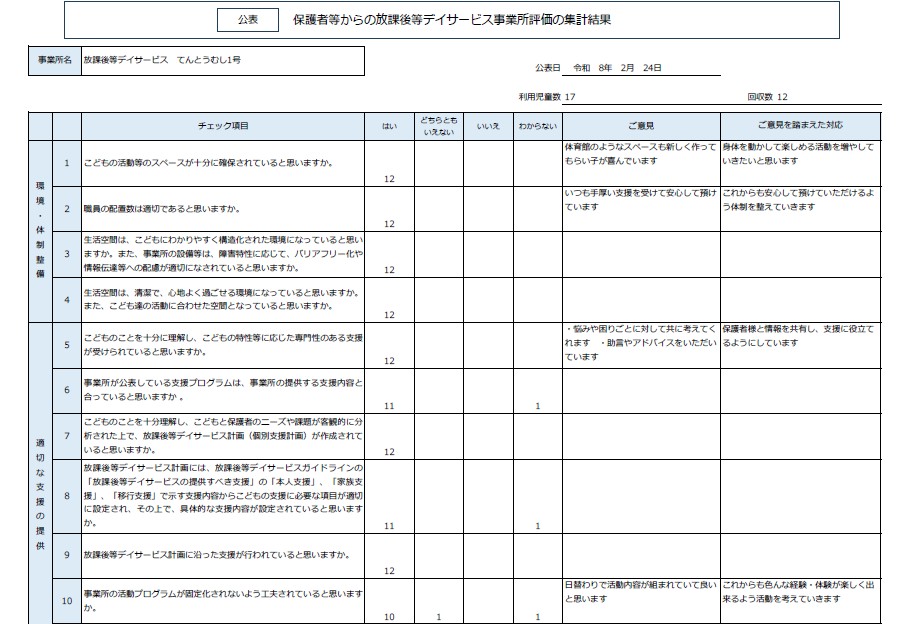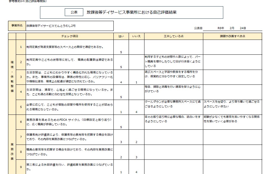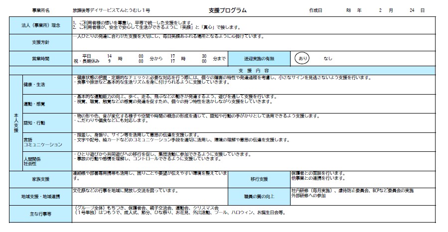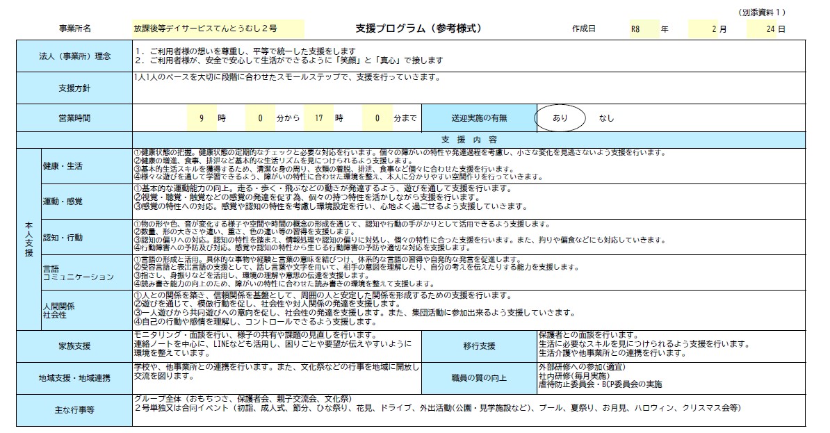 令和7年度 放課後等デイサービス事業所てんとうむし2号 自己評価・保護者等の事業所評価・支援プログラム